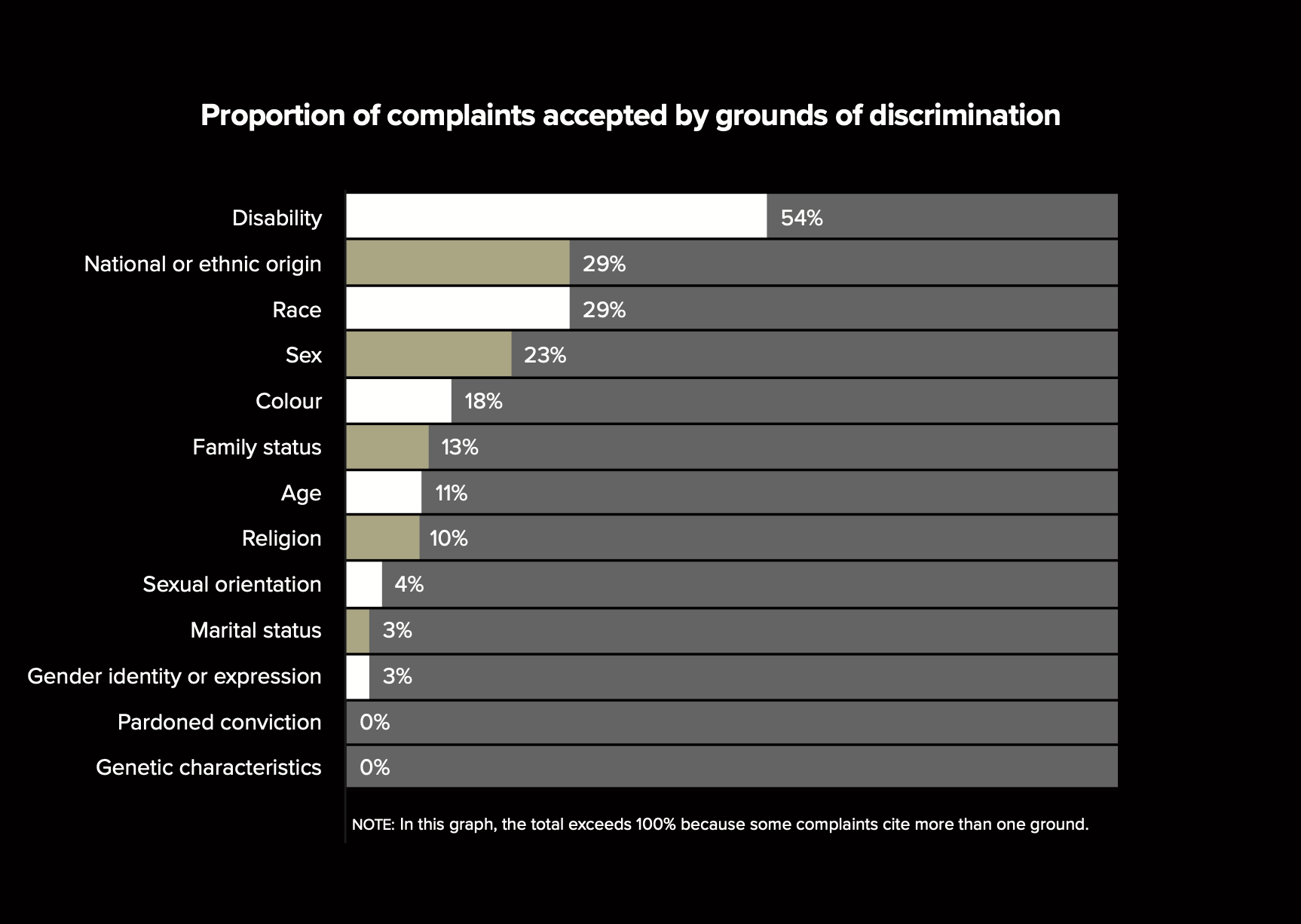 Note: In this graph, the total exceeds 100% because some complaints cite more than one ground.